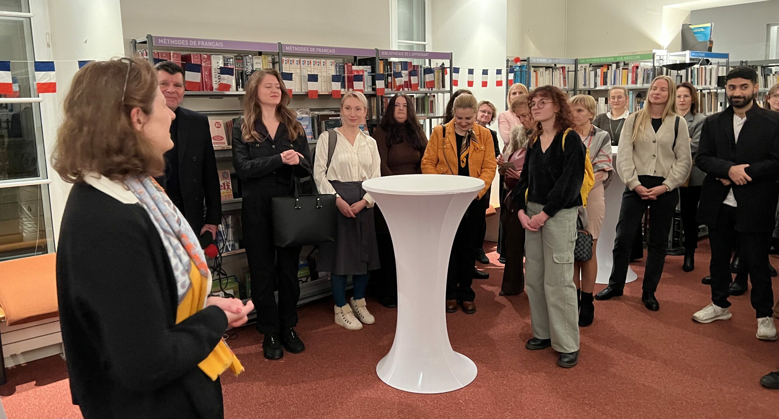 Lors du cocktail organisé par l’Institut français, Madame l’Ambassadrice de France en Lituanie a pris la parole pour rappeler les liens qui unissent tous les acteurs culturels œuvrant au rayonnement de la francophonie sur le territoire. La soirée s’est poursuivie par des échanges conviviaux entre les participants français et lituaniens.
