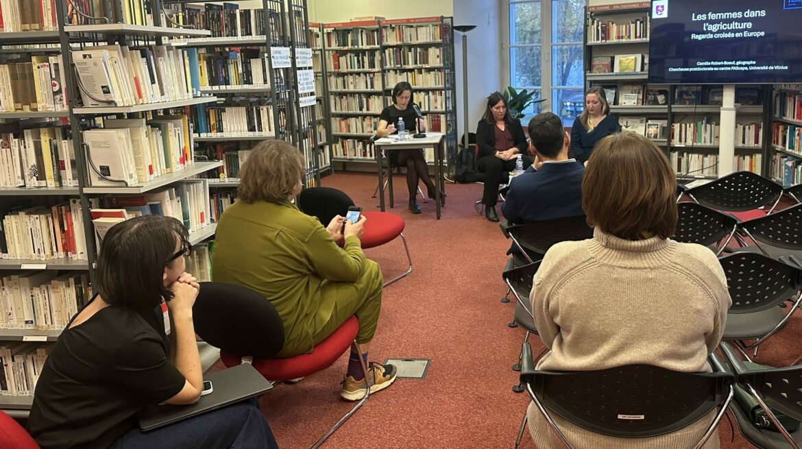 Le 15 octobre 2024, la conférence à l’Institut Français Les femmes dans l’agriculture a eu lieu. Lors de la conférence Camille Robert-Bœuf, docteure en géographie et postdoctorante à l’Université de Vilnius au Centre de recherche des paysages (post)autoritaires (PAScape) avec la modératrice Blandine Mollard, chercheuse à l’Institut européen pour l’égalité entre les hommes et les femmes ont discuté l’évolution de l’agriculture européenne.